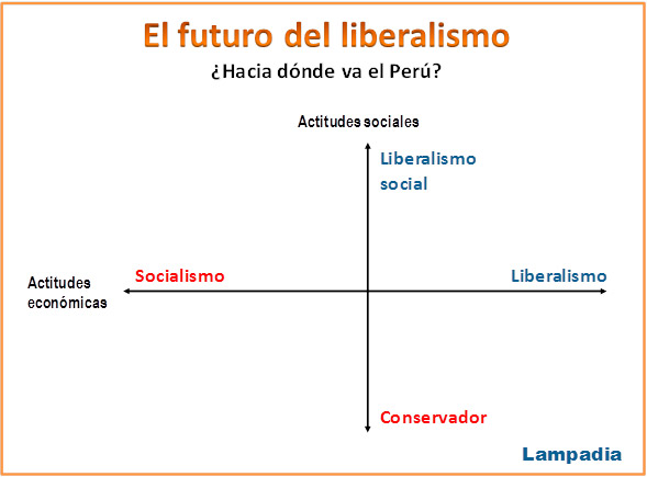 En el Perú, el avance del liberalismo ha sido más lento. Si bien se ha generalizado entre los líderes de opinión y la prensa – la mayoría de quienes tenemos la oportunidad de expresarnos periódicamente nos identificamos con el liberalismo –, no se aprecia un avance significativo en la opinión pública. En el ámbito económico, si bien el éxito del modelo ha llevado a que la mayoría apoye la economía de mercado, todavía un amplio sector se identifica con planteamientos controlistas o incluso estatistas. En política, la propensión al autoritarismo que caracterizó a la época del terrorismo, se reaviva ante el crecimiento de la delincuencia. En el ámbito social, la mayoría aprueba el uso de anticonceptivos, pero se opone a la unión civil entre personas del mismo sexo.