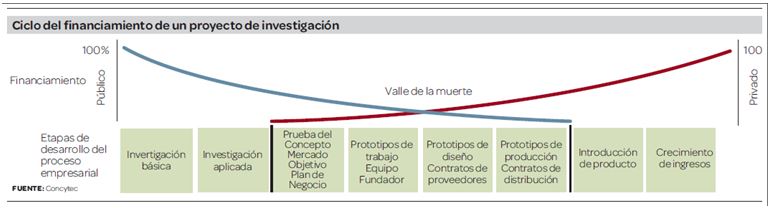 El tránsito de una investigación hacia una innovación o producto específico es muy largo en el Perú, puede tomar hasta 10 años, dependiendo del sector. Uno de los motivos de esta realidad es que el Estado no ha fomentado esta práctica, precisamente por los pocos fondos con los cuales se contaba hasta hace algún tiempo.