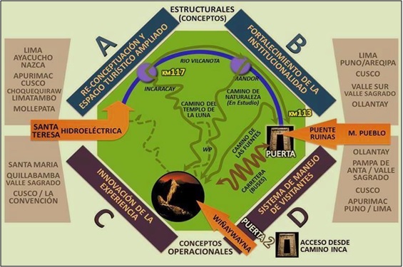 • Sin embargo la visión a largo plazo incluye, además, integrar otros atractivos como Chokequirao, Vilcabamba, y varios cientos de caminos incas que interconectan un gran espacio, entre los ríos Urubamba y Apurimac.