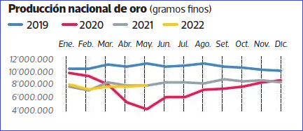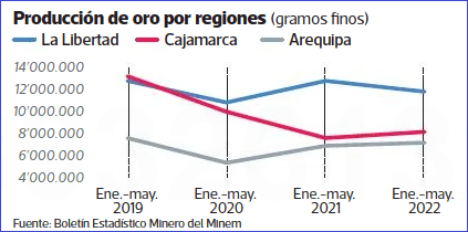 Para el caso del oro, la producción de este metal en Cajamarca fue 40% menor que el 2019; y en Áncash, la de zinc aún es menor que la de los primeros cinco meses del 2022 con respecto al similar período del 2021. No obstante, la cifra es mayor que los niveles prepandemia.
